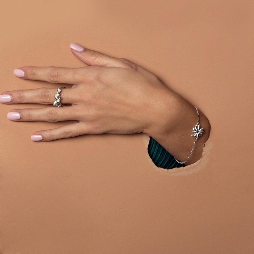 Elegantna srebrna zapestnica s kristalnim zvezdnim motivom. Nastavljive velikosti.