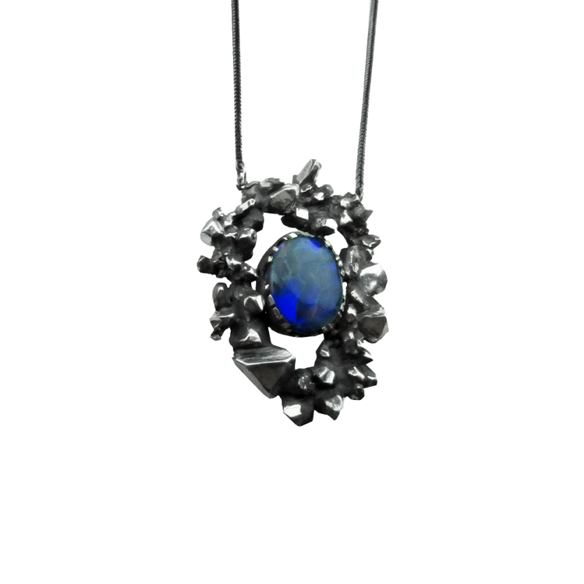 Neukročena kristalna struktura sestavljena v obliko ovalnega obroča, je namenjena sodobnim iskalcem magije. Temna barva srebra ustvarja čudovito igro kontrastov s čarobnim opalom.