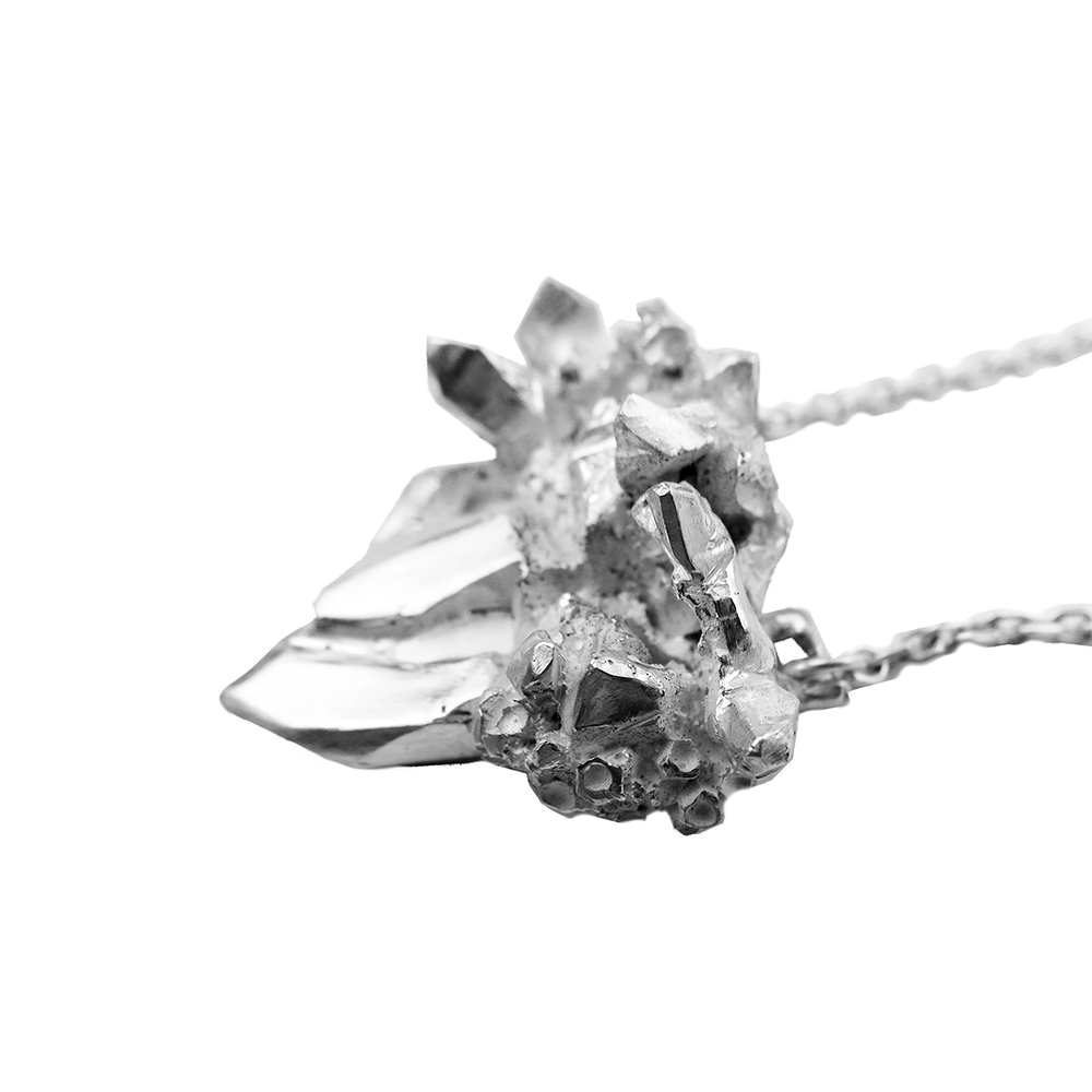 Osrednji elementi kolekcije 'Čisti kristal' so iskrive kristalne strukture, ki na videz delujejo, kot da so v simbiozi s človeškim telesom. Geometrijski kristali s svojimi ravnimi linijami in organsko rastjo ustvarjajo dinamično igro kontrastov; med grobim in nežnim, med organskim in geometrijskim. Oblike kristalov dopolnjujejo prosojni dragulji, ki poudarjajo njihov lesk in teksturo. Kolekcija je namenjena odločnim posameznikom z izostrenim občutkom za estetiko, ki ljubijo čiste linije v kontrastu z neukročeno naravo.