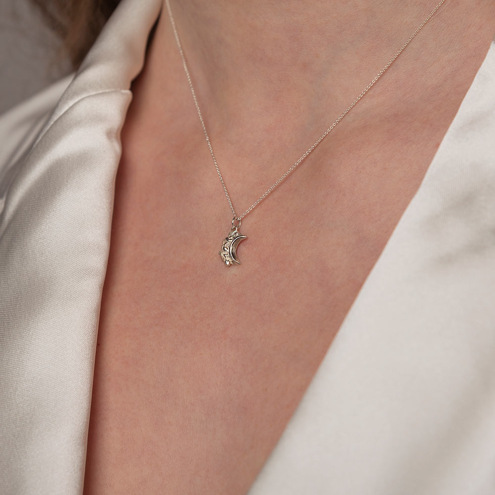 Ljubko ogrlico s kristalno strukturo, v obliki luninega krajca, lahko nosite samostojno ali jo kombinirate z ogrlico Mesec za prefinjen videz. Preizkustite slojenje ogrlic različnih dolžin!
