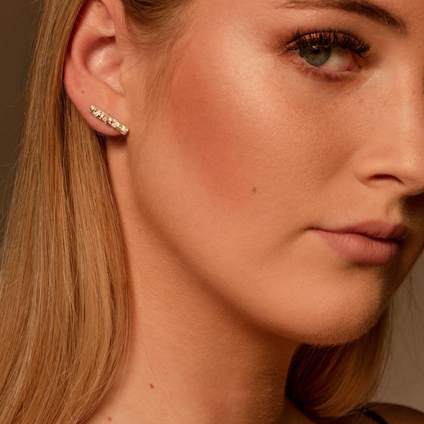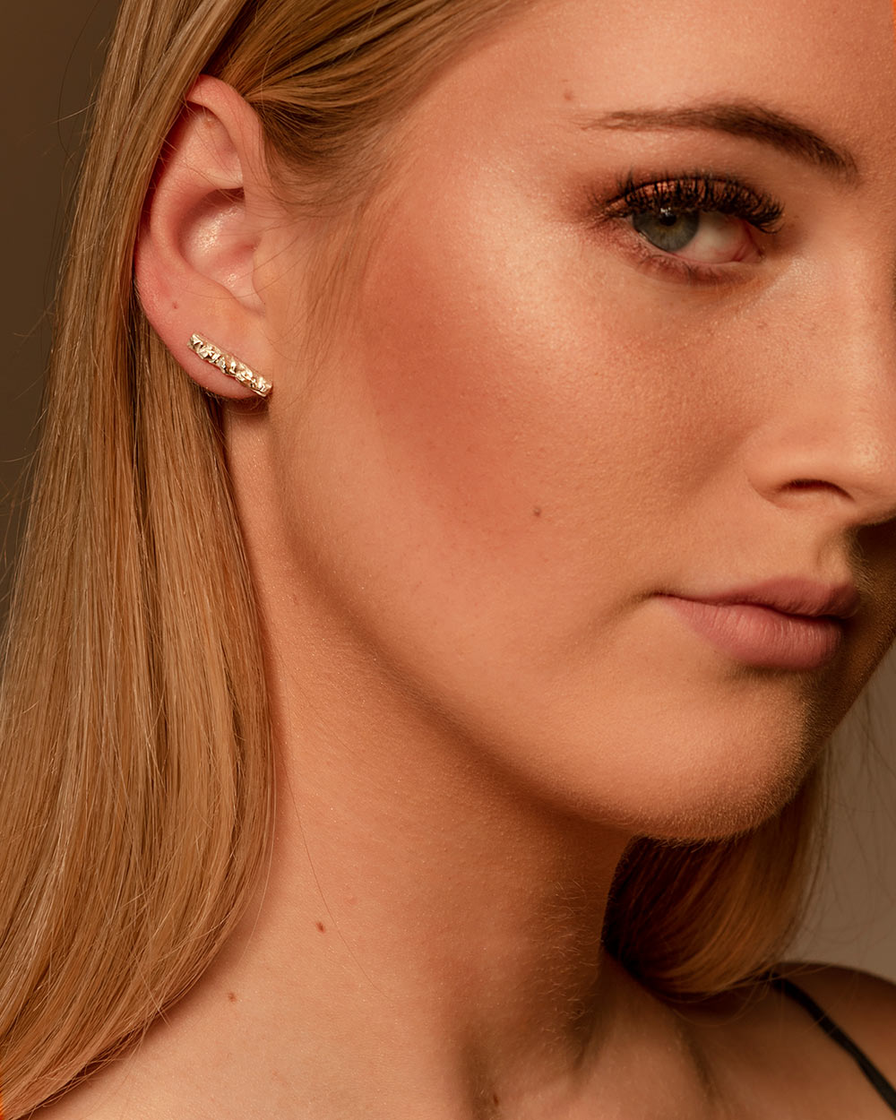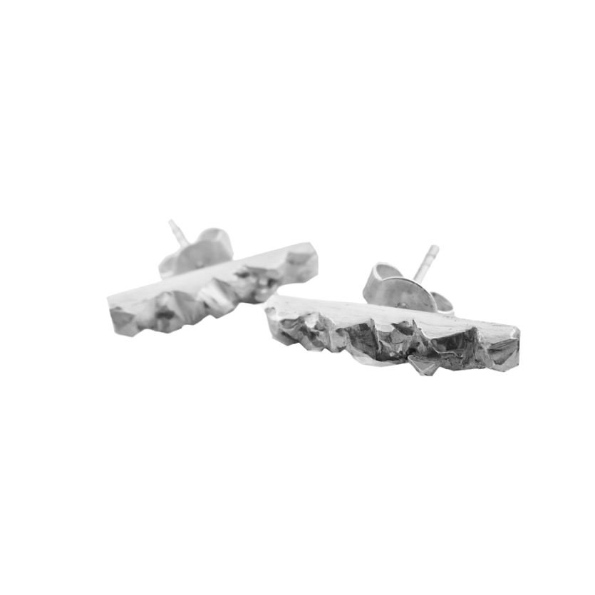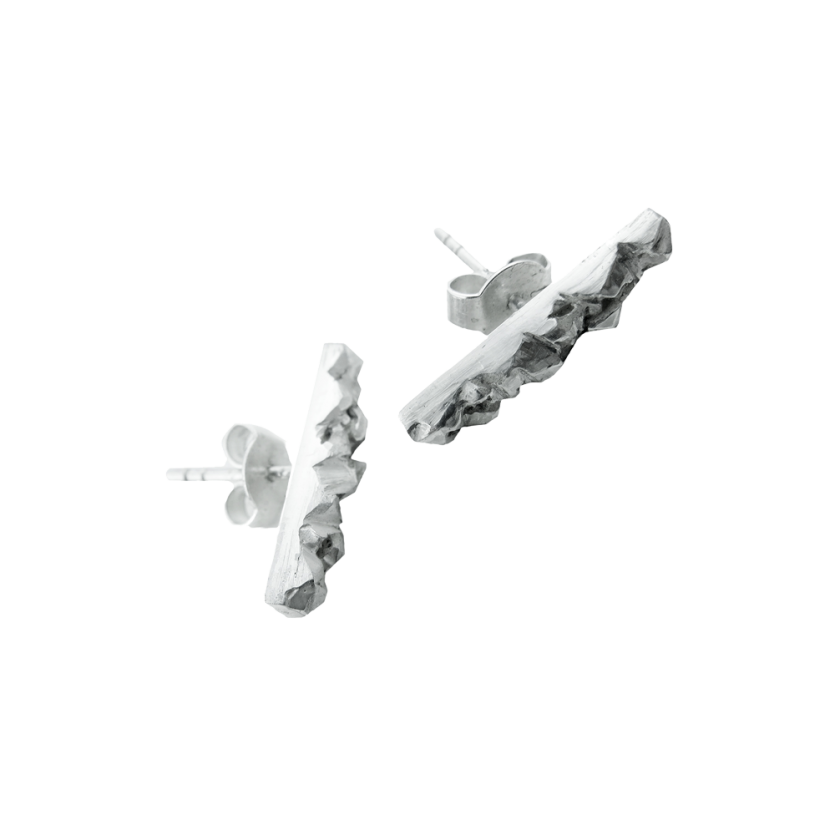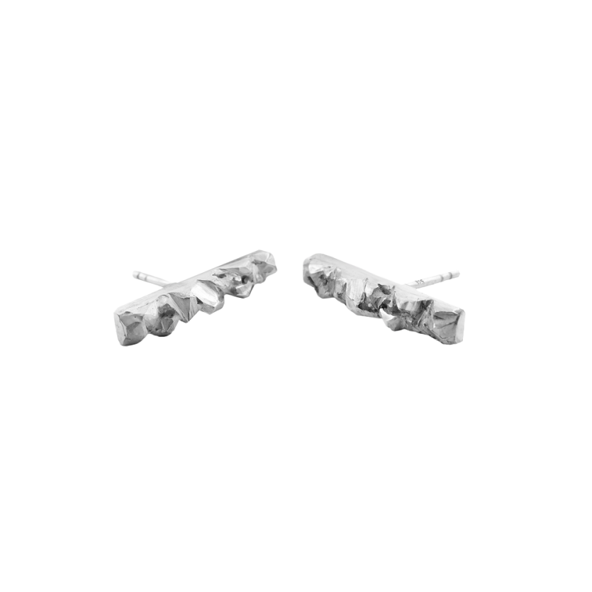 Minimalistični uhani s kristalno strukturo, ki se navdihujejo po razgibanem reliefu Julijskih alp.