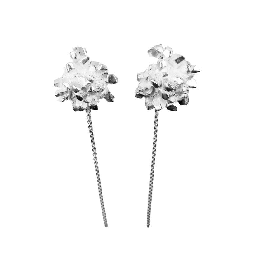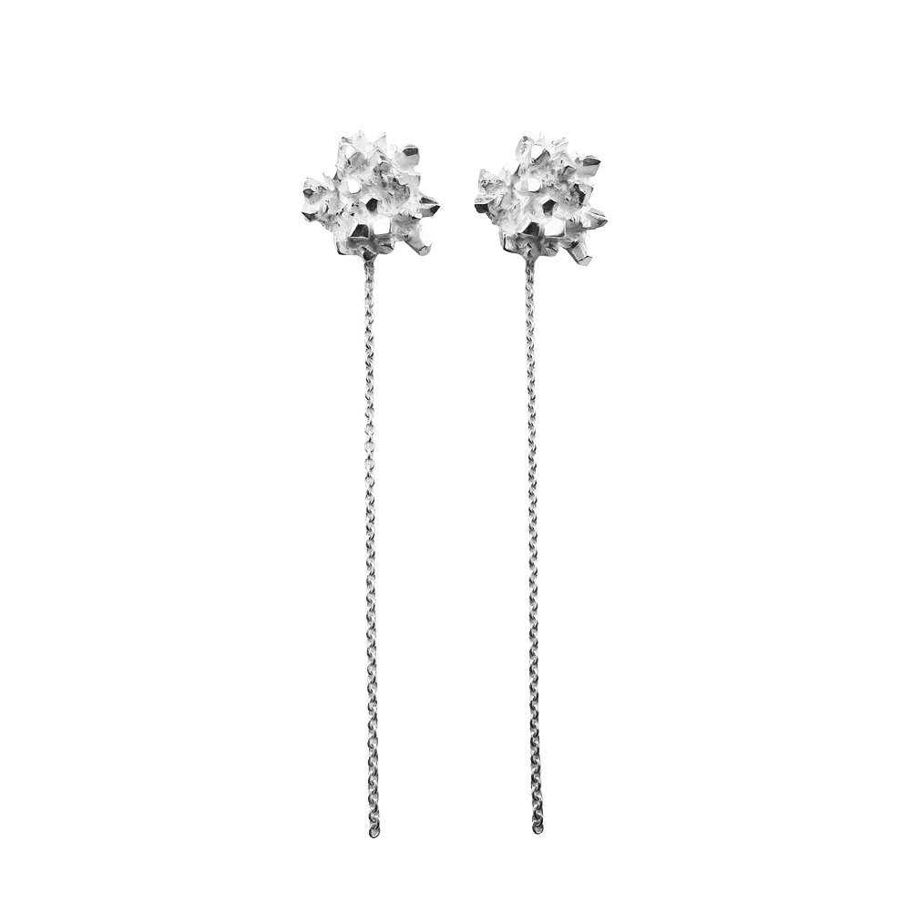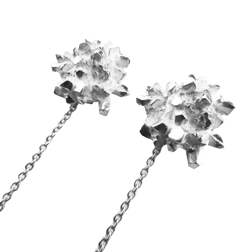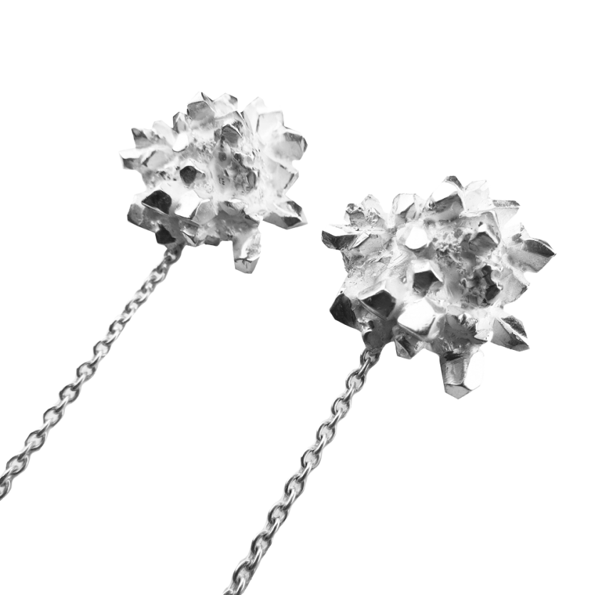 Osrednji elementi kolekcije 'Čisti kristal' so iskrive kristalne strukture, ki na videz delujejo, kot da so v simbiozi s človeškim telesom. Geometrijski kristali s svojimi ravnimi linijami in organsko rastjo ustvarjajo dinamično igro kontrastov; med grobim in nežnim, med organskim in geometrijskim. Oblike kristalov dopolnjujejo prosojni dragulji, ki poudarjajo njihov lesk in teksturo. Kolekcija je namenjena odločnim posameznikom z izostrenim občutkom za estetiko, ki ljubijo čiste linije v kontrastu z neukročeno naravo.