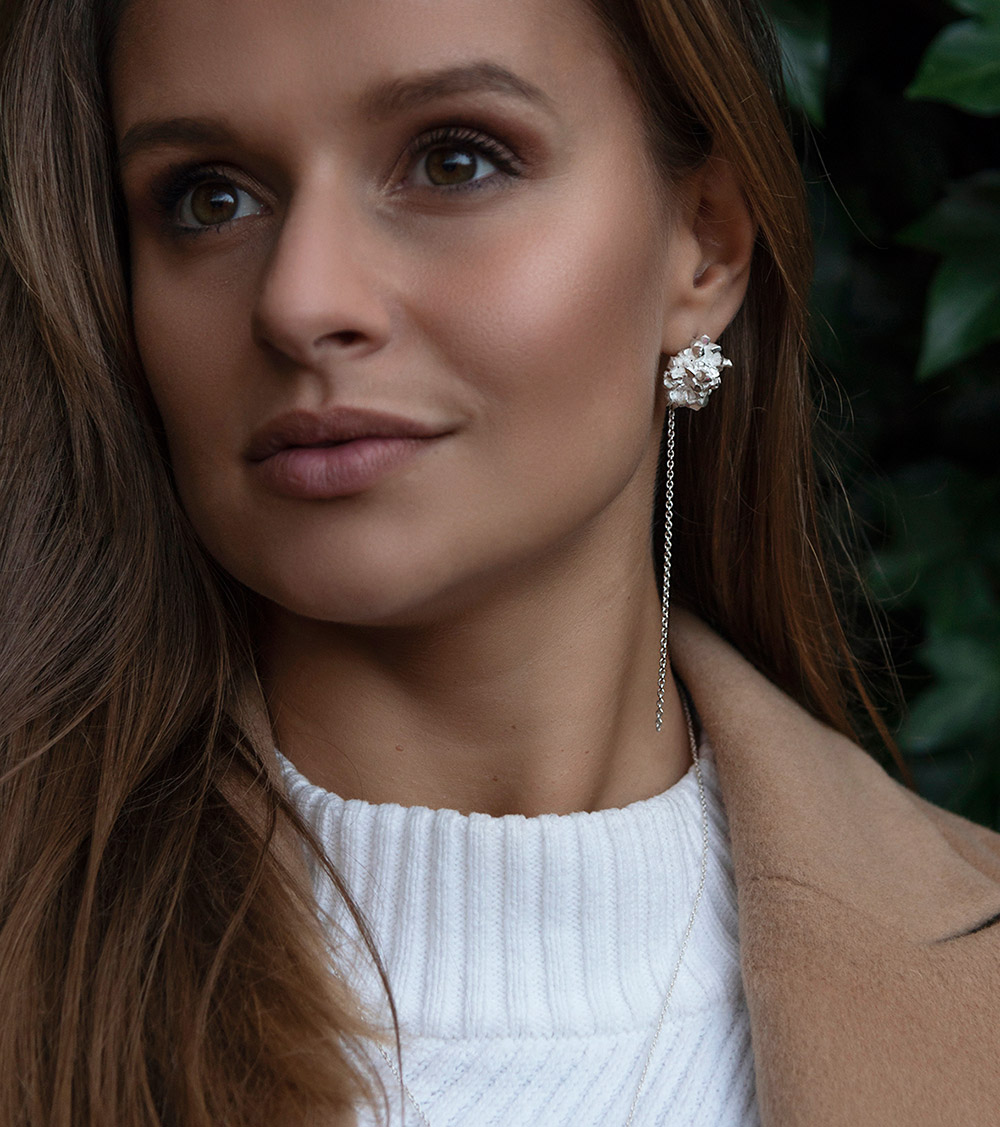 Nakit se ob rednem nošenju spreminja z vami. Na začetku je nakit nov in bleščeč, z vami pa bo pridobil povsem novo zgodbo. Še posebej srebro, ki je močno podvrženo vplivom iz okolja, hitro pridobi temno patino. Srebro namreč reagira z žveplom v zraku, zaradi česar se na površini pojavi patina. Na začetku kot plast rumenkaste, ki potemni na rjavo in nazadnje na črno. Na tistih mestih, kjer se nakit drgne ob telo, ostane kovina bleščeča, saj ga z nošenjem nezavedno poliramo. Večina mojega nakita je močno teksturiziranega, tako se ob potemnitvi linije poglobijo in ustvarijo povsem nov videz.