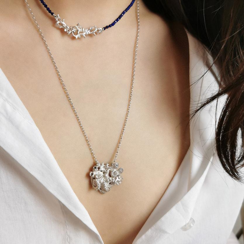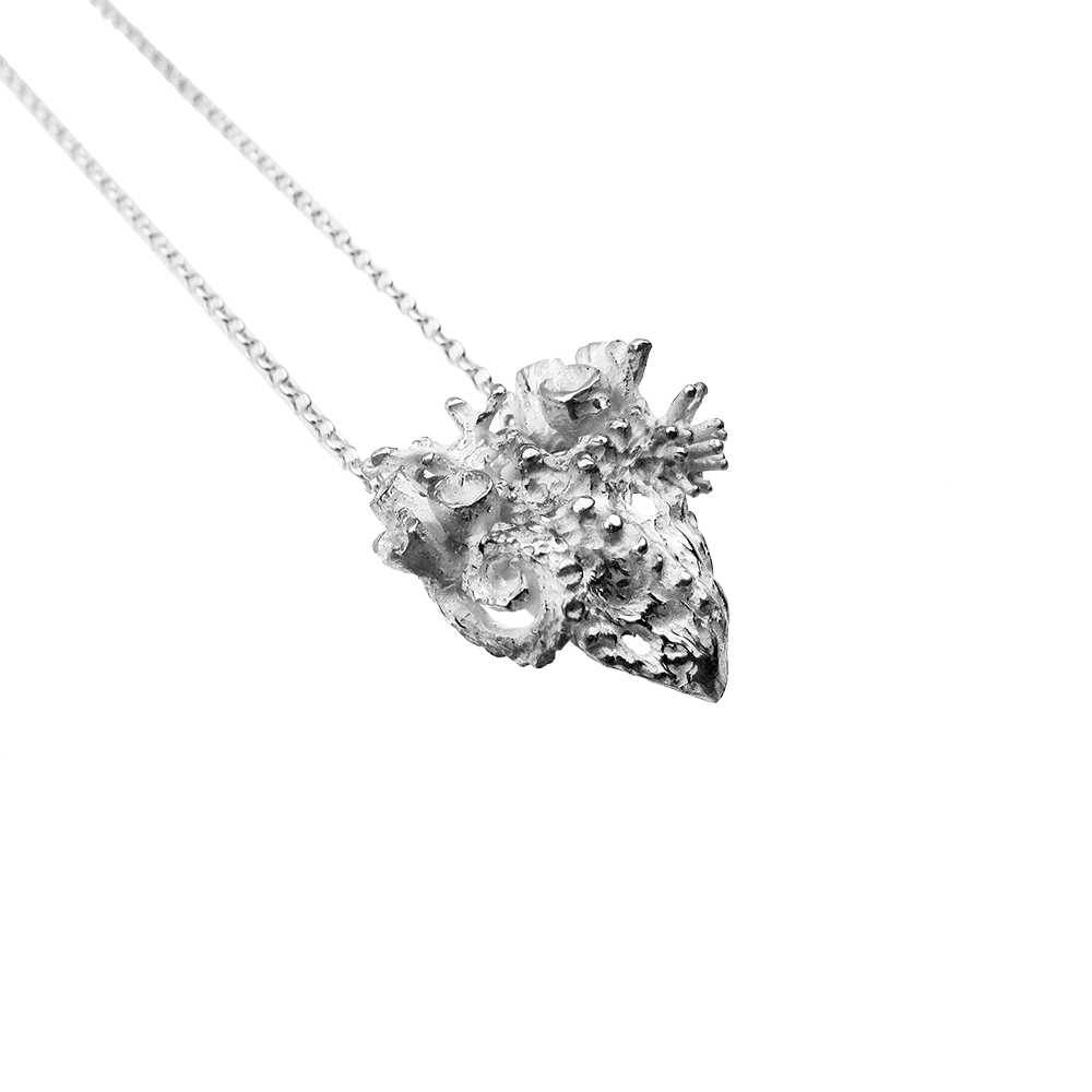 Anatomska oblika srca je poraščena z morskimi organizmi, koralami in morsko zvezdo. Čudovit obesek za vse, ki jim je morje ukradlo srce.