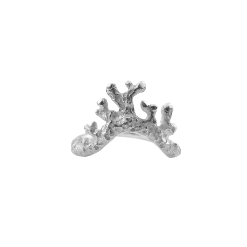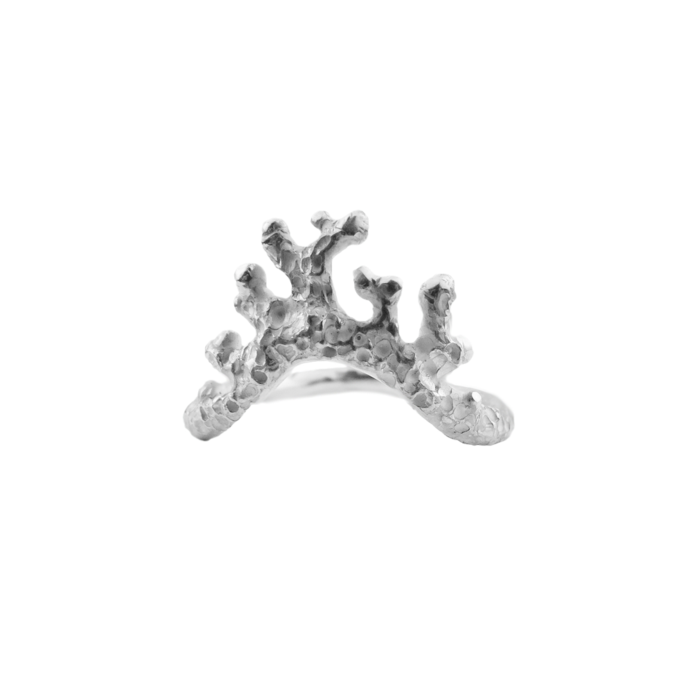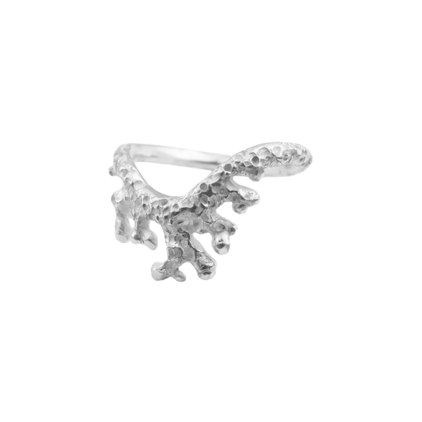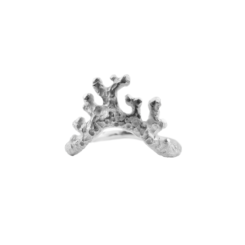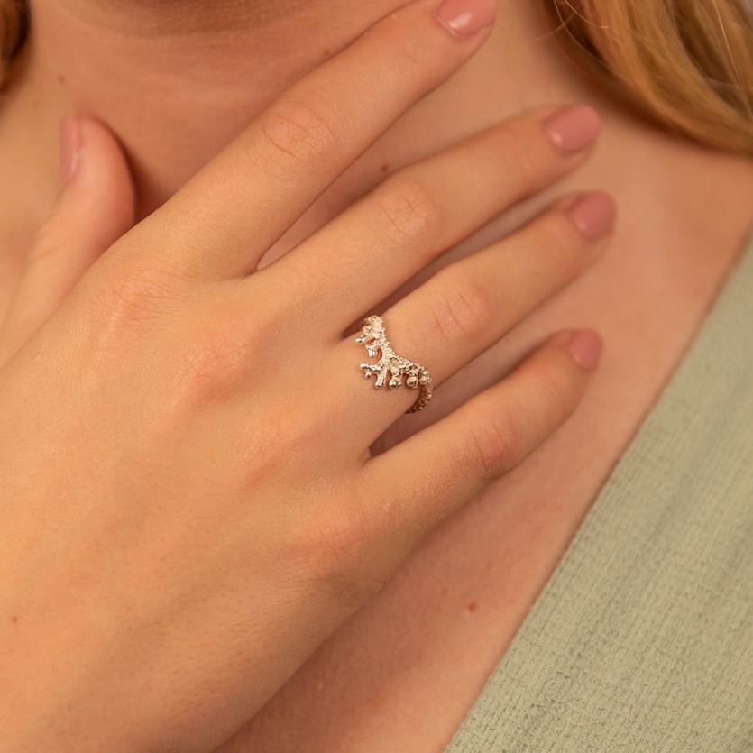 Nežen prstan s koralno strukturo v obliki črke U bo na vaših rokah pričaral občutek morske lahkotnosti. Za igriv videz ga nosite v kombinaciji z drugimi prstani.