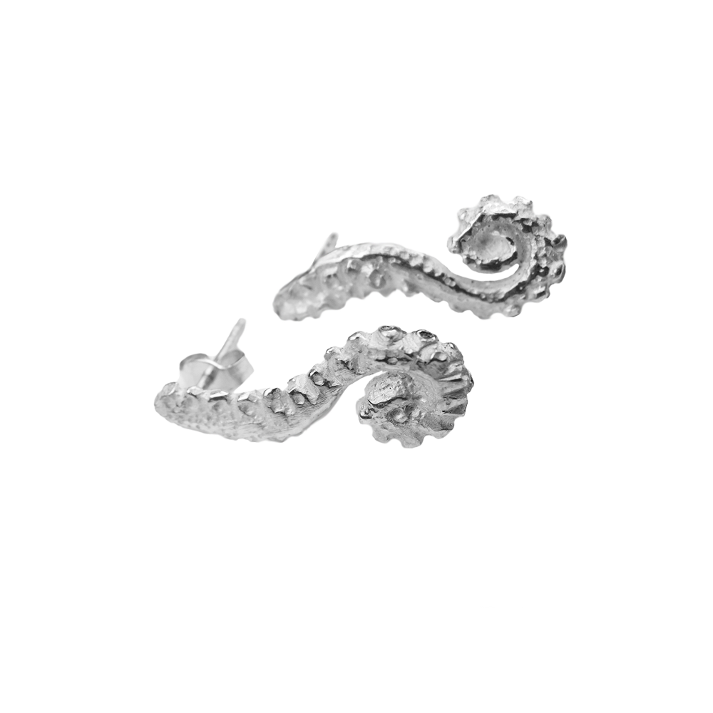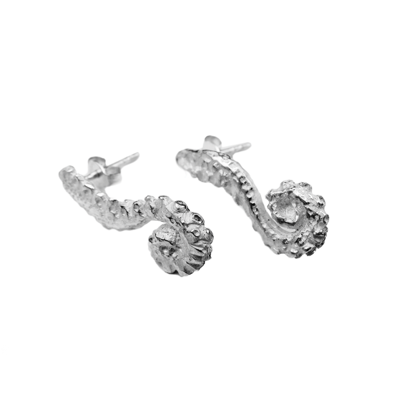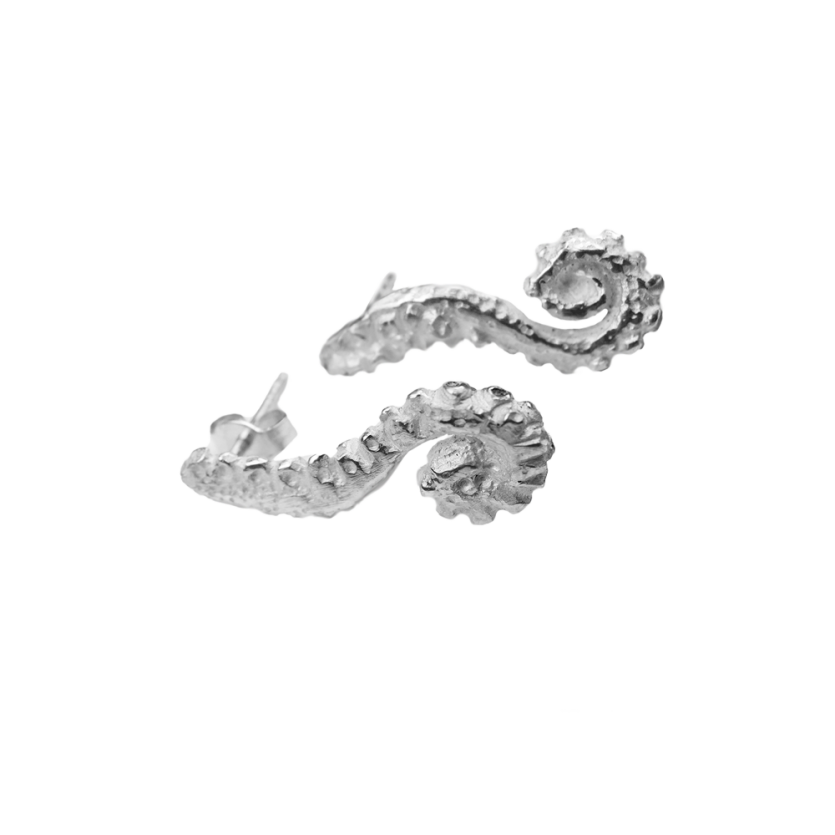 Drzni srebrni uhani so oblikovani v obliko lovk hobotnice. Z njimi se boste počutili kot morska deklica.