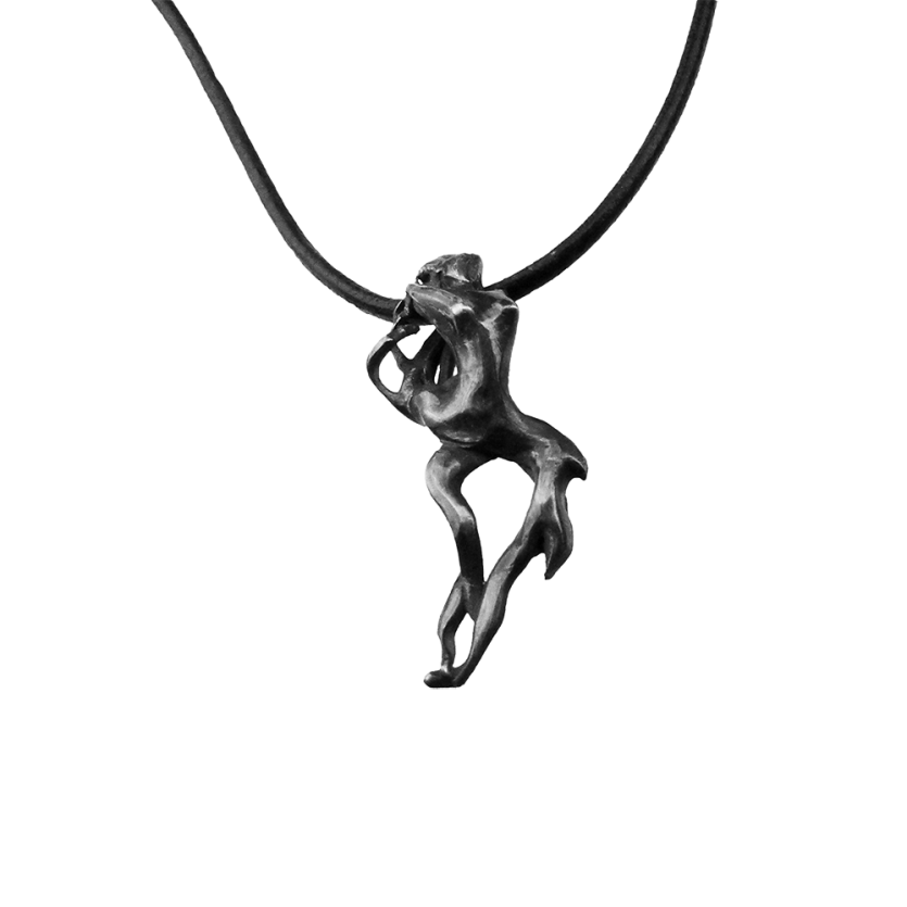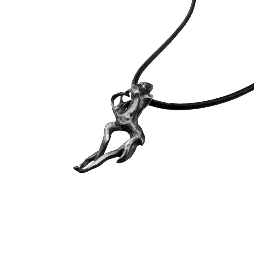 Figura gozdne boginje v temni barvi srebra, na usnjeni vrvice nastavljive dolžine.