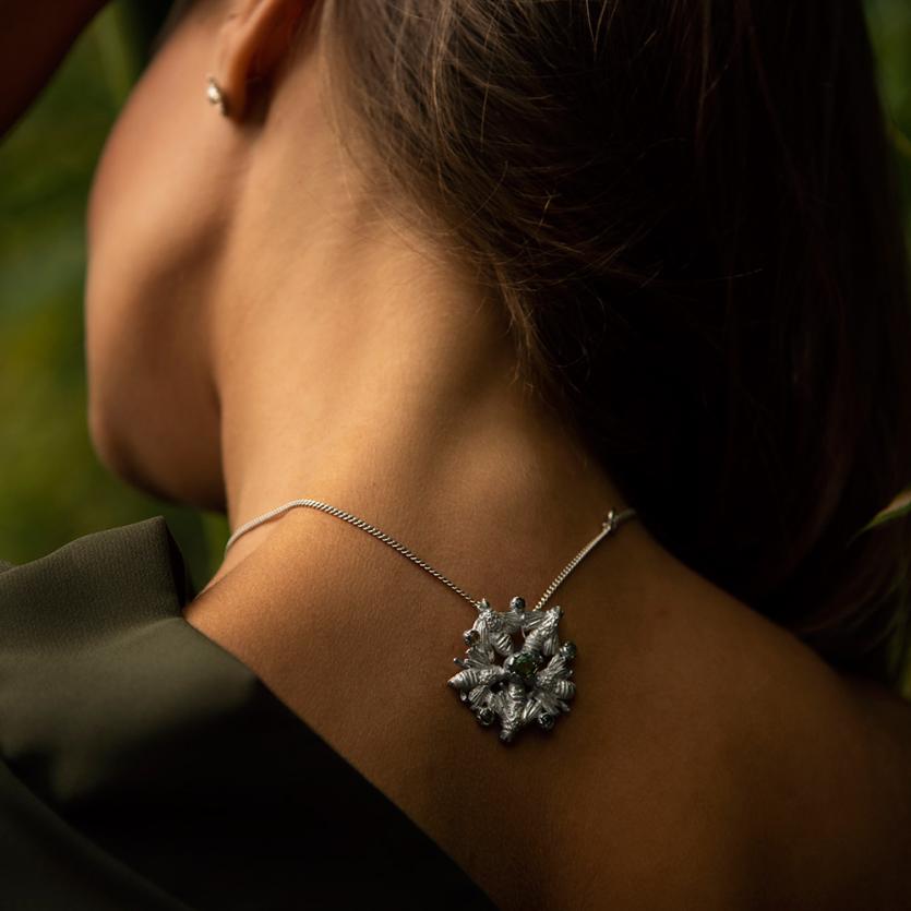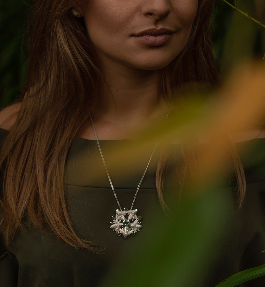 Nakit se ob rednem nošenju spreminja z vami. Na začetku je nakit nov in bleščeč, z vami pa bo pridobil povsem novo zgodbo. Še posebej srebro, ki je močno podvrženo vplivom iz okolja, hitro pridobi temno patino. Srebro namreč reagira z žveplom v zraku, zaradi česar se na površini pojavi patina. Na začetku kot plast rumenkaste, ki potemni na rjavo in nazadnje na črno. Na tistih mestih, kjer se nakit drgne ob telo, ostane kovina bleščeča, saj ga z nošenjem nezavedno poliramo. Večina mojega nakita je močno teksturiziranega, tako se ob potemnitvi linije poglobijo in ustvarijo povsem nov videz.