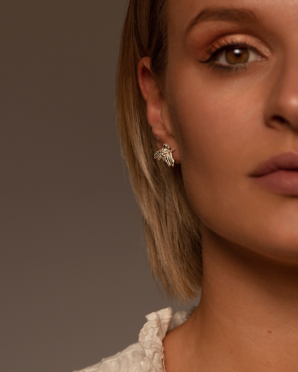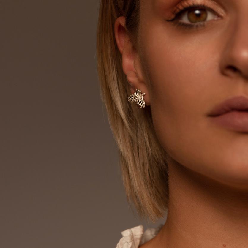 Ljubki uhani oblikovani po navdihu kranjske čebelice, s pozornostjo do detajla od kril do tipalk.