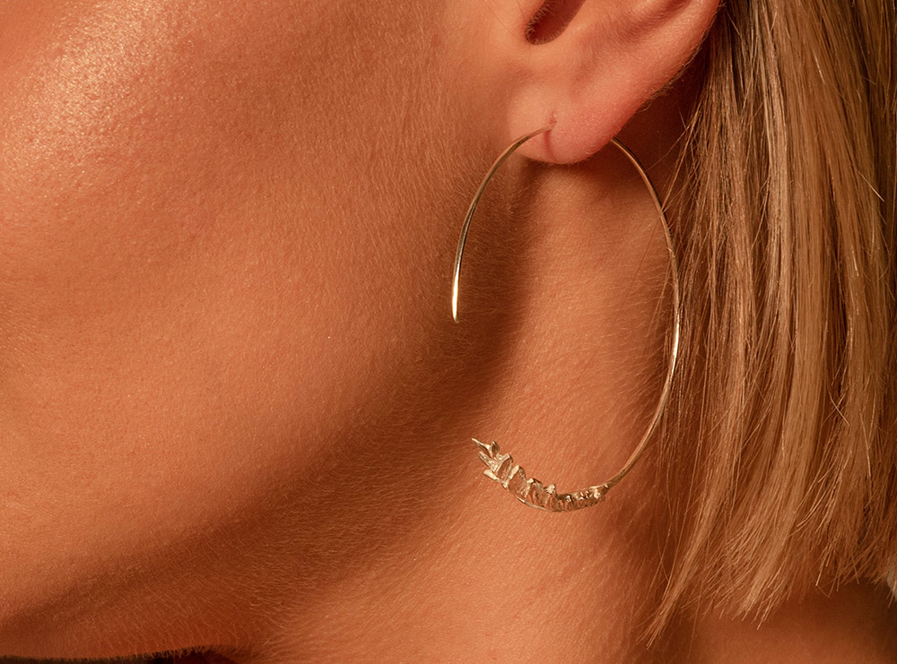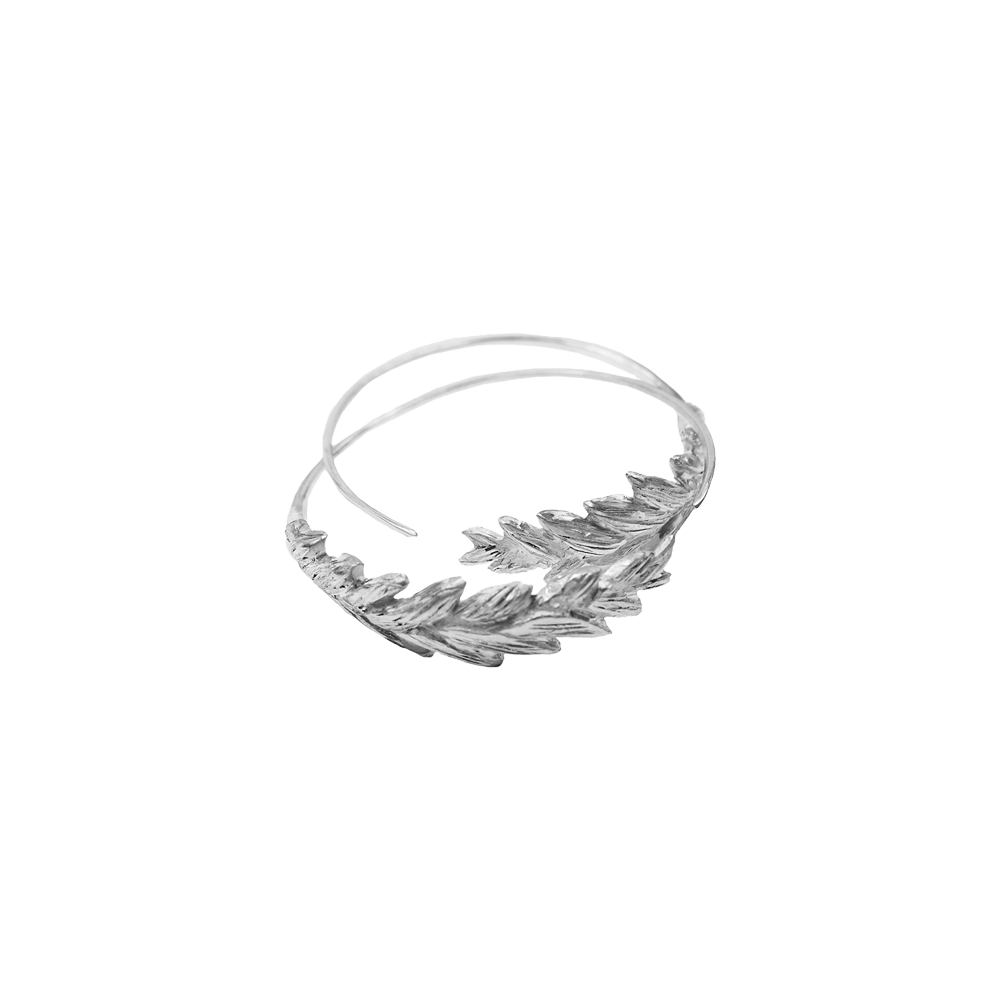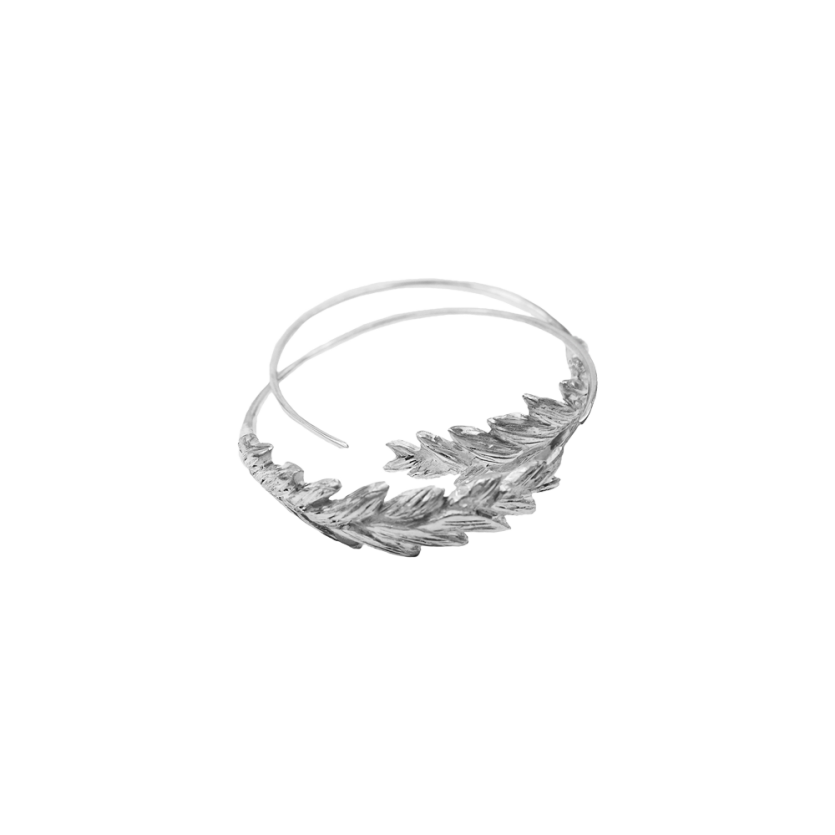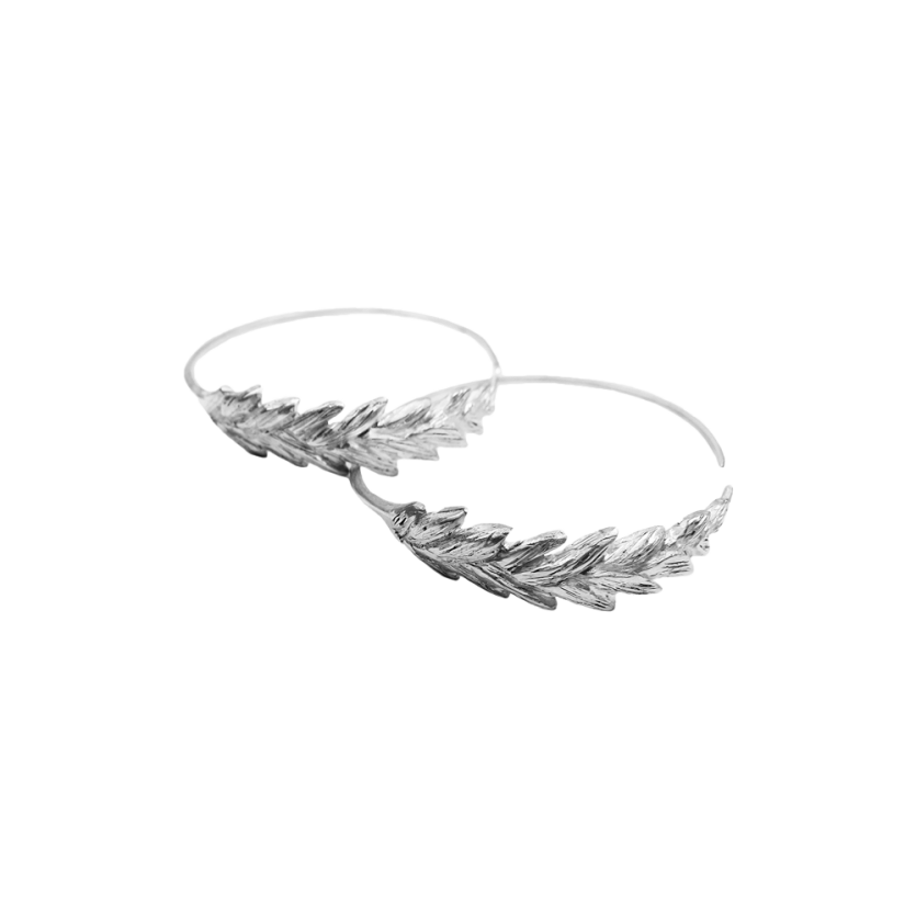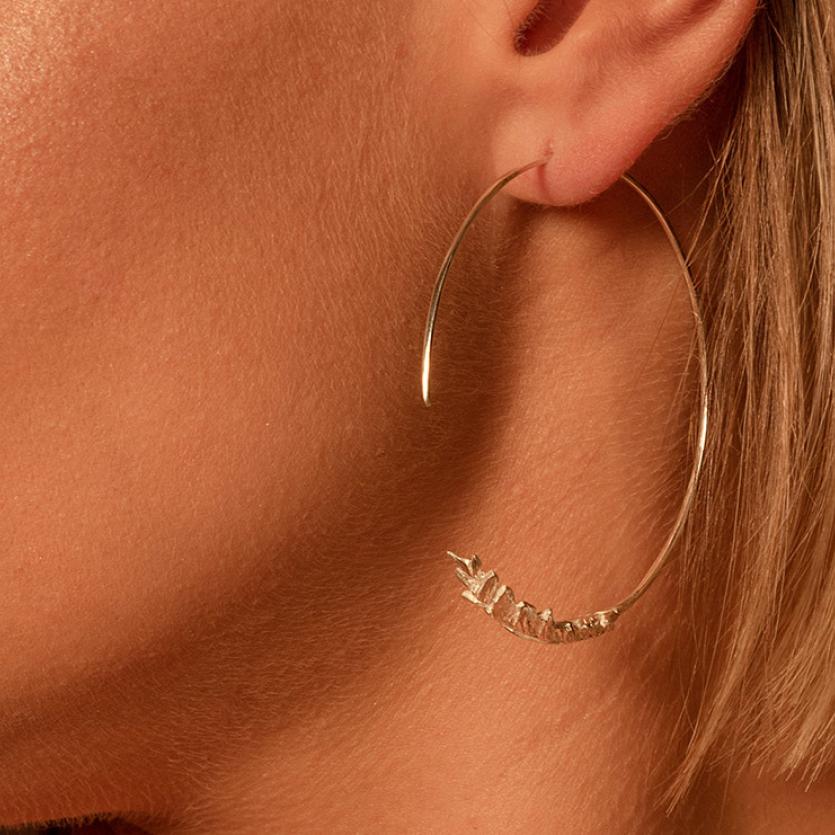 Uhani s čudovito teksturo lovorovega venca, ki se krožno nadaljuje v obliko krožnih uhanov.