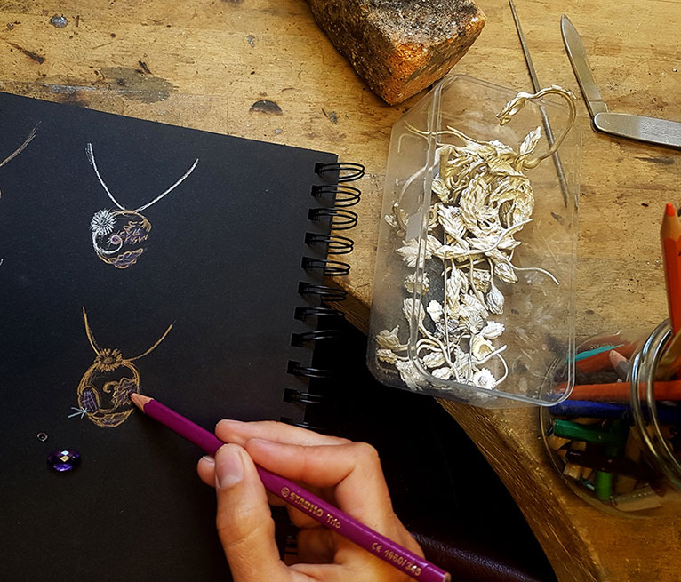 Oblikujem iz srebra, belega, rožnatega in rumenega 18 ct zlata. Možna je tudi kombinacija med srebrom in zlatom. Če imate svoje zlato ali zlat nakit, ki ga ne nosite več, ga lahko pretopim v novo osnovo.